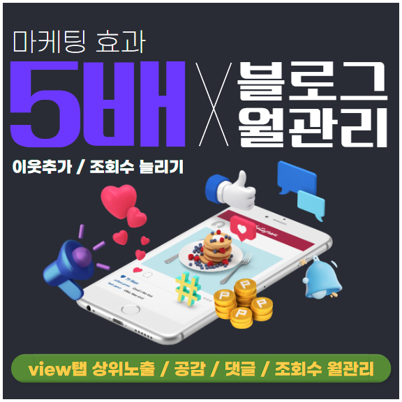 블로그이웃, 블로그이웃관리, 블로그공감, 블로그댓글, 블로그조회수 등 전체 영역의 블로그마케팅을 진행합니다.